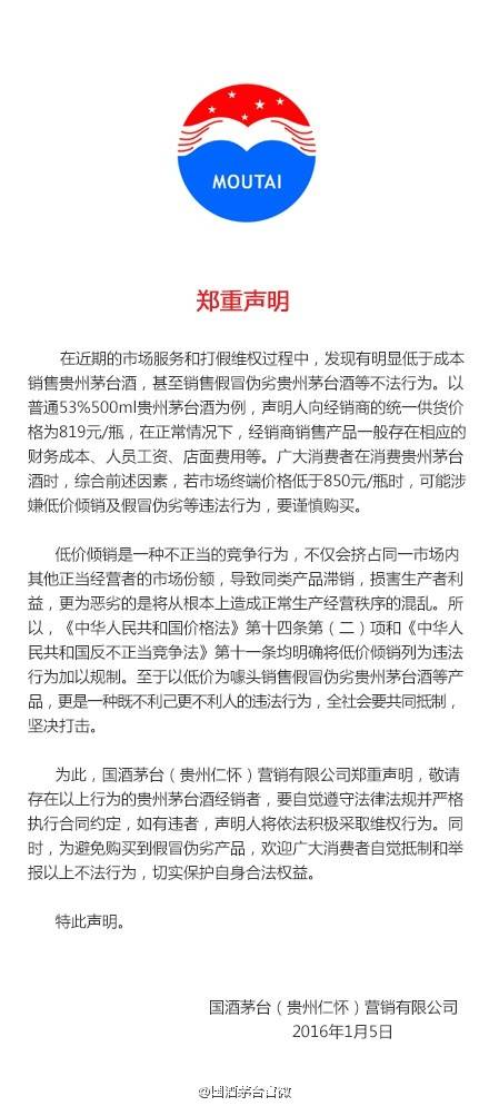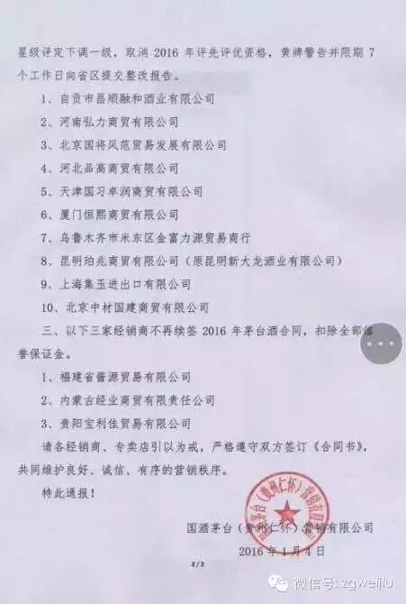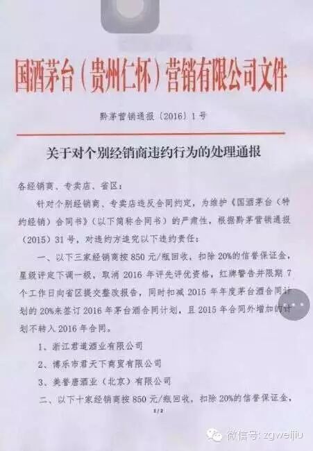 经销商称,“此次发文,明显有杀一儆百的意思,让经销商向市场去要效益,不要盯着厂家的腰包。”不少茅台酒商如此解读。不过,在酒商看来,该文件的下发,应该是马正鹏的手笔。“茅台经销商大会结束后,马正鹏正式担任了销售公司总经理一职。马总对茅台非常了解,之前是从事基建管理,后进入销售公司后,担任党委书记一职,是销售公司第二把手,分管干部选拔以及纪律方面的工作,其工作风格就是雷厉风行。让其担当总经理一职,应该也是希望借助其风格,在2016年解决茅台稳价问题。”有酒商分析道。