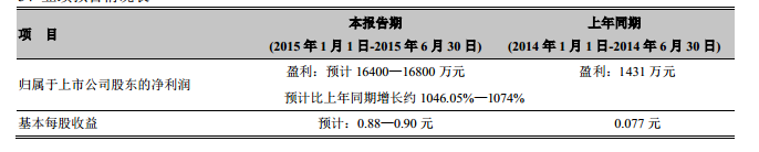今日晚间,兰州黄河企业发布了2015年半年业绩预增公告,公告显示,公司预计上半年实现盈利16400—16800万元,预计比上年同期增长约 1046.05%—1074% 。