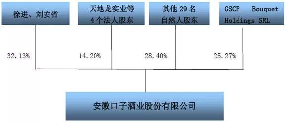 其次则是第二大股东,口子酒业董事长、总经理徐进,其持股比例为18.68%,第三大股东则为口子酒业监事会主席刘安省,其持股比例为13.45%。第四大股东为江苏天地龙实业有限公司,持股比例为7.48%。第四大股东为江苏天地龙实业有限公司,持股比例为7.48%。