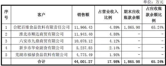 口子酒业的招股书显示:2011年-2013年,百维食品和顺达商贸连续三年位列口子酒前两大经销商。