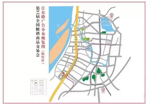 户外广告的发布规划也同时公布。根据规划,第93届全国糖酒会的户外广告规划以南京国际博览中心为重点,按照“六横三纵一高速”的思路来展开。其中江东中路和江东北路为主要发布线路,广告形式主要有: