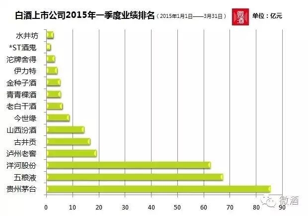 2015年第一个季度,白酒企业业绩普遍呈现增长态势,其中仅有山西汾酒、金种子、沱牌舍得三家企业一季度业绩同比下降,在增长的企业中,酒鬼酒的业绩同比大增98.03%,这似乎意味着酒鬼酒已经走出负面事件的影响。