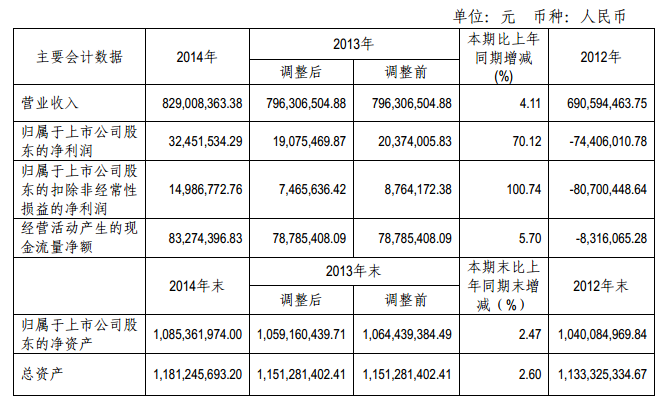 7日晚间,福建省燕京惠泉啤酒股份有限公司发布关于2014年度业绩报告公告称,报告期内,在公司董事会的领导下,公司全体员工共同努力,围绕着“诚实守信、团队至胜、追求卓越、协作发展”的方针,不断提升管理效率,降低经营成本,推进产品结构优化和品质升级,公司整体经济效益稳步上升。实现营业收入 82,900.84 万元,较上年同期增长 4.11%;实现利润总额 3,284.26 万元,较上年同期增长 43.23%。实现归属于母公司的净利润 3,245.15 万元,较上年同期增长 70.12%。